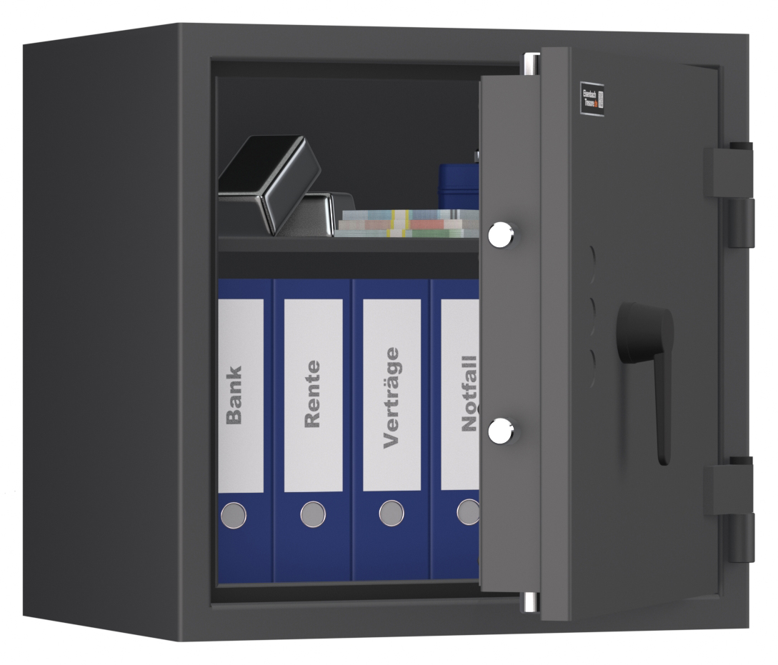 - Höchst widerstandsfähige Türfront und Korpus gegen Angriffe mit mechanischen und thermischen Einbruchwerkzeugen