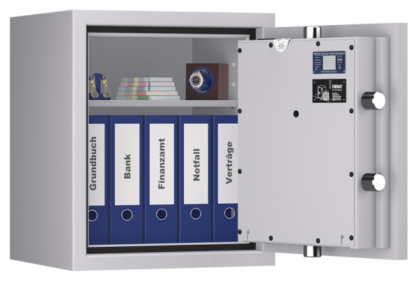 - Höchst widerstandsfähige Türfront und Korpus gegen Angriffe mit mechanischen und thermischen Einbruchwerkzeugen