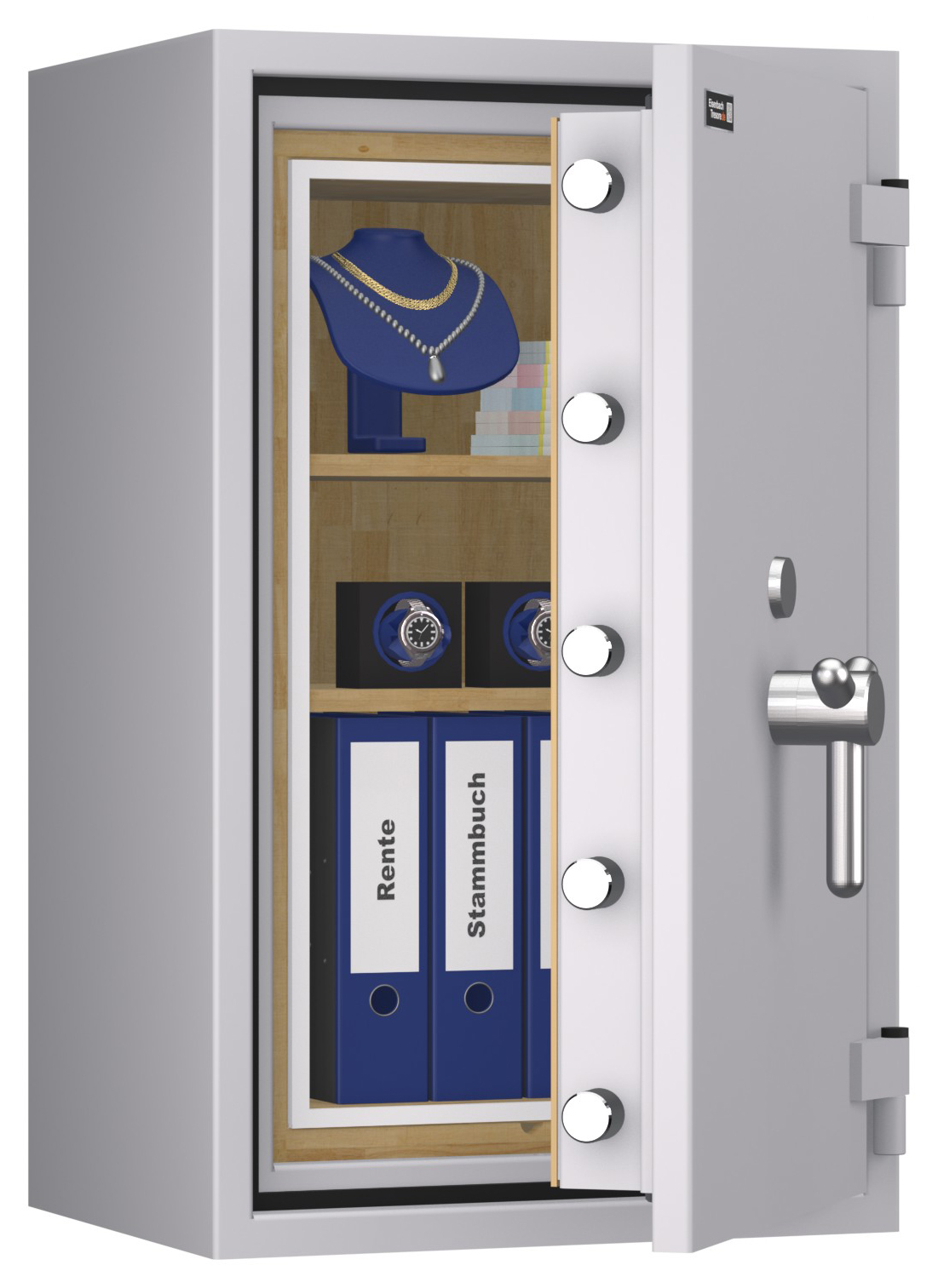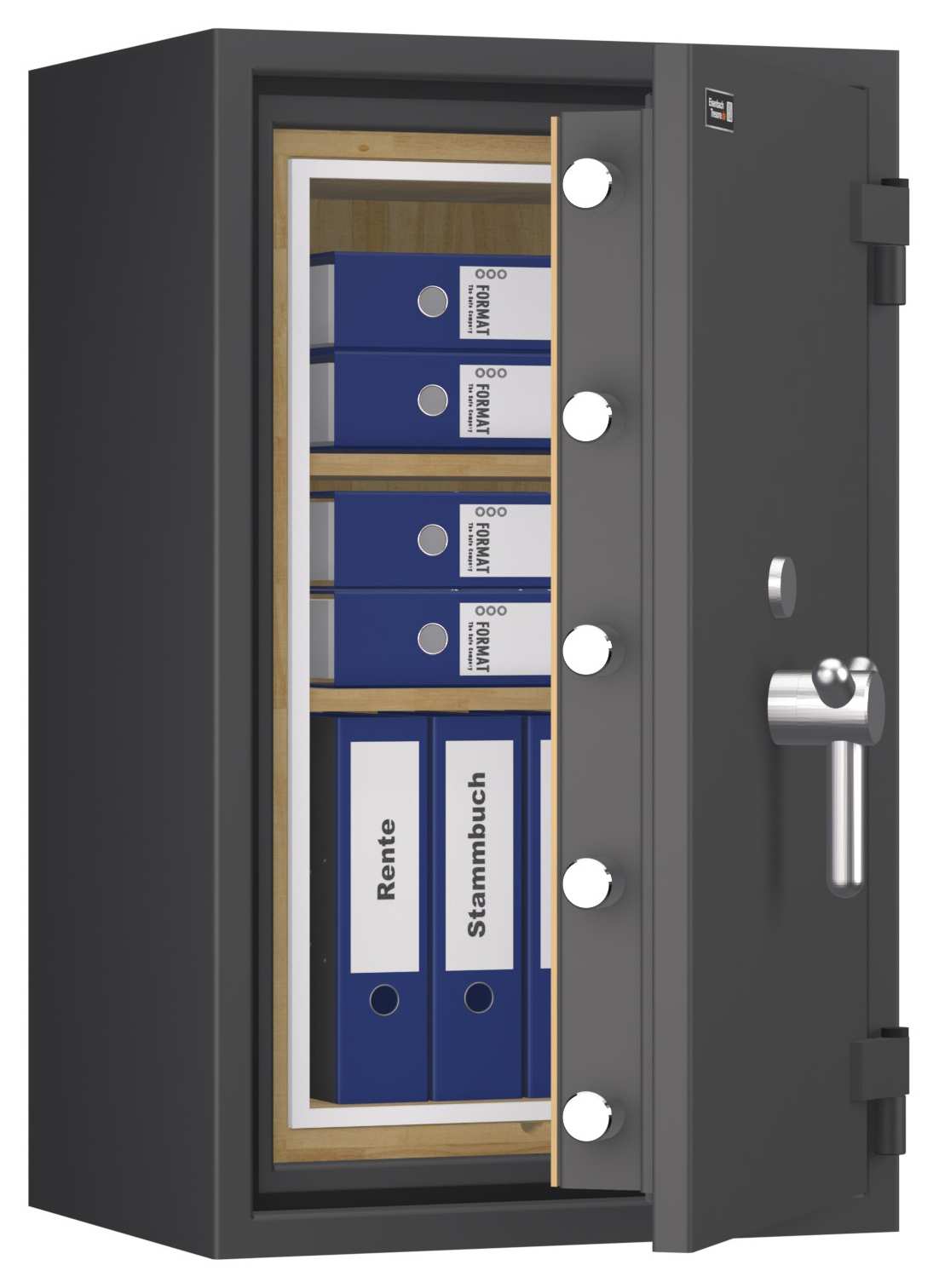 - Höchst widerstandsfähige Türfront und Korpus gegen Angriffe mit mechanischen und thermischen Einbruchwerkzeugen