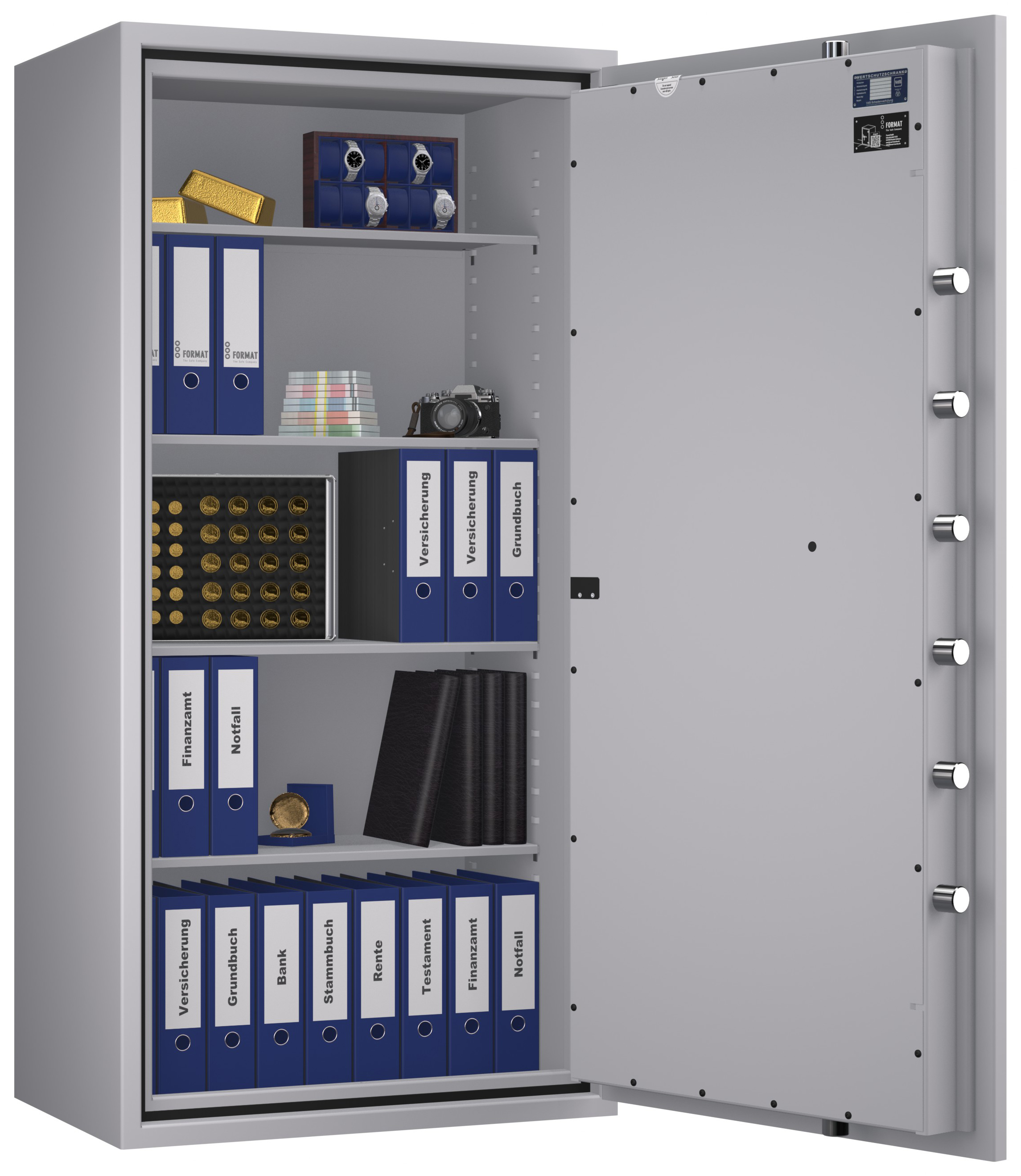 - Höchst widerstandsfähige Türfront und Korpus gegen Angriffe mit mechanischen und thermischen Einbruchwerkzeugen.