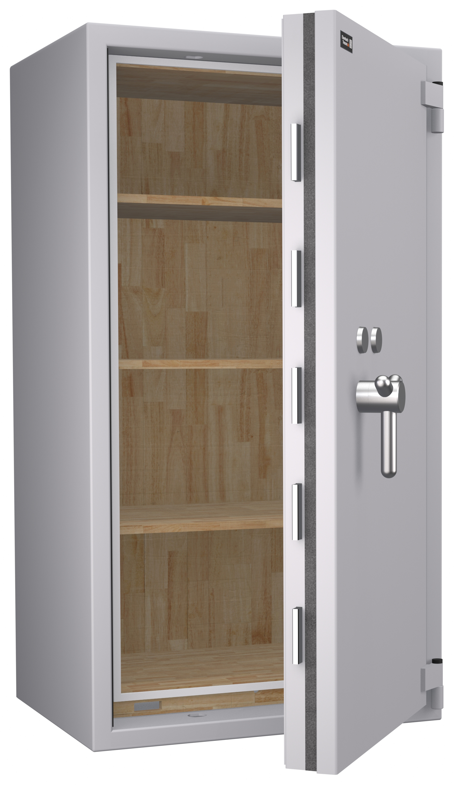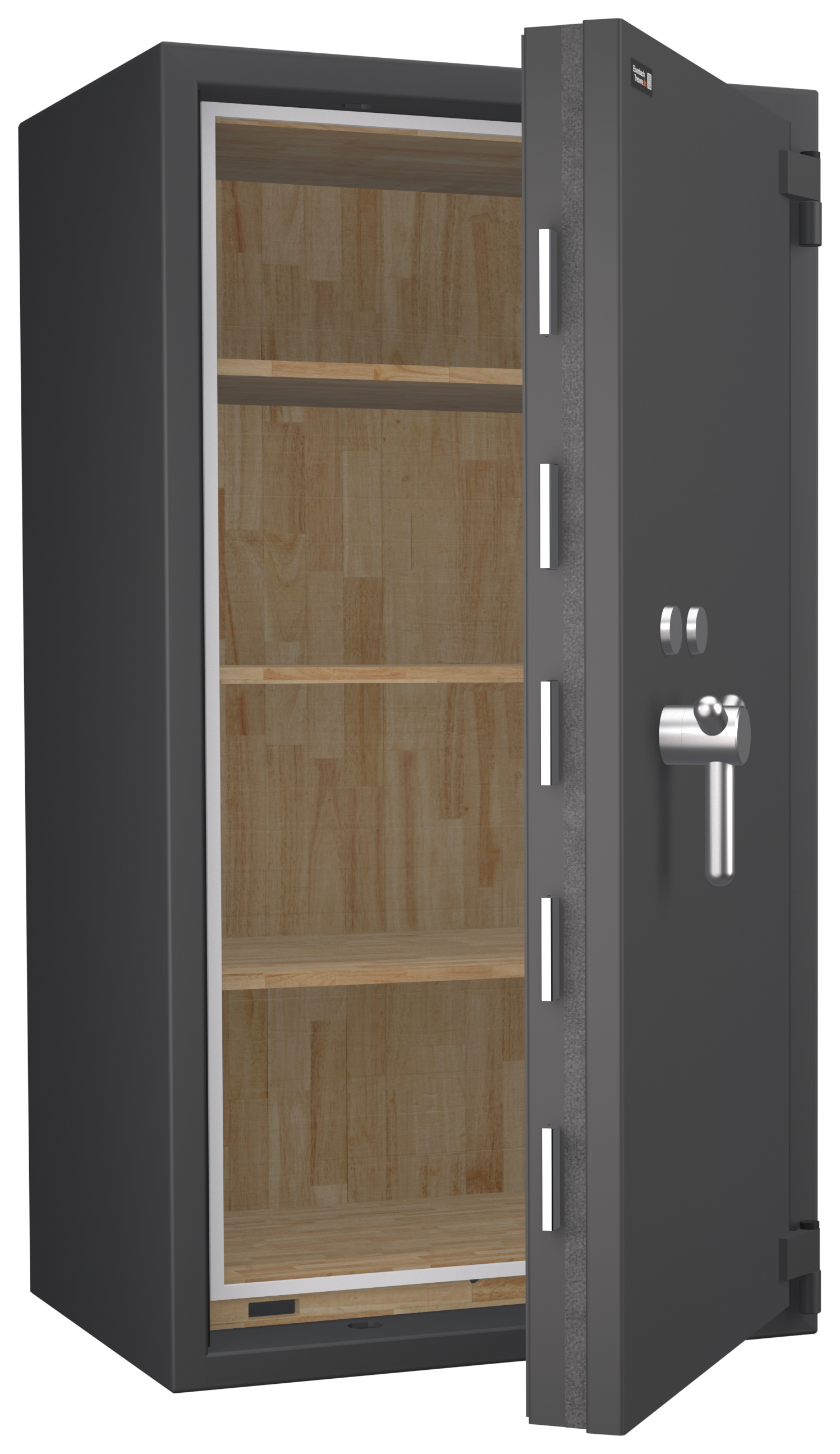 - Höchst widerstandsfähige Türfront und Korpus gegen Angriffe mit mechanischen und thermischen Einbruchwerkzeugen